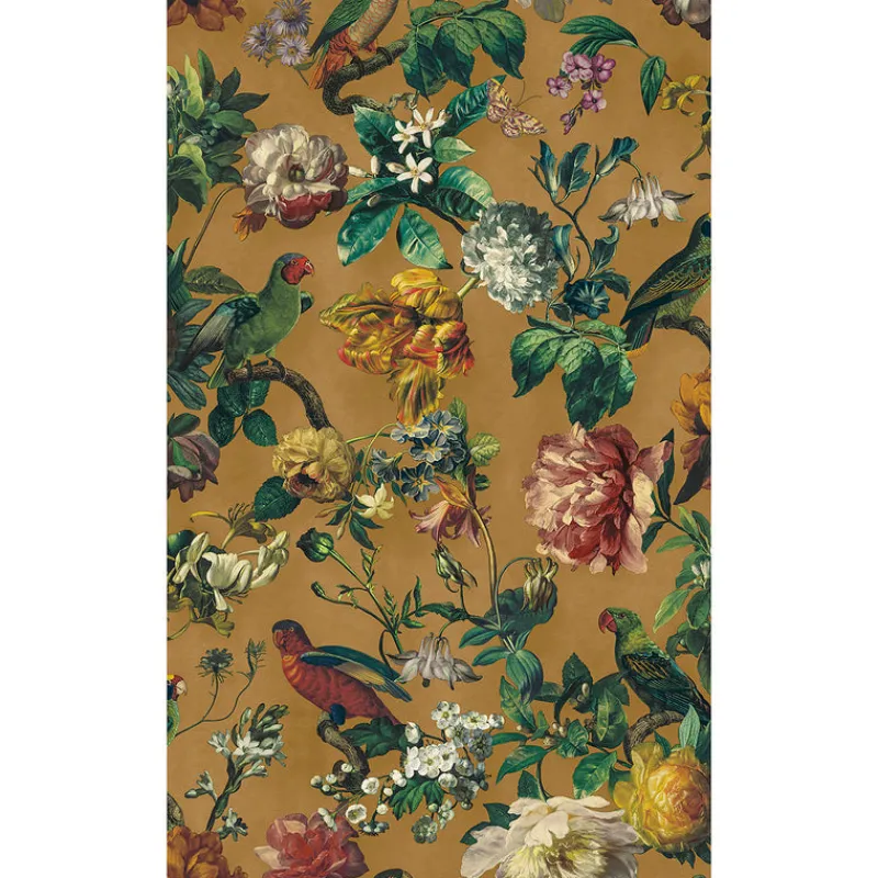 Rich with character, this exquisite floral design adds a tropical maximalist flair to your home. The custard backdrop adds a warm glow to the botanicals while the perched parrots and vintage florals infuse your décor with timeless elegance. Claude is an unpasted, vinyl on non woven wallpaper.