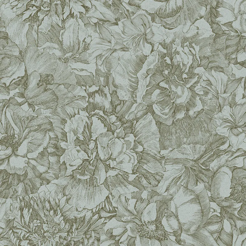Composed of sage inks, this stunning floral wallpaper will bloom before your eyes. Its vintage color palette is perfect for giving your décor an ethereal style. Auguste is an unpasted, vinyl on non woven wallpaper.