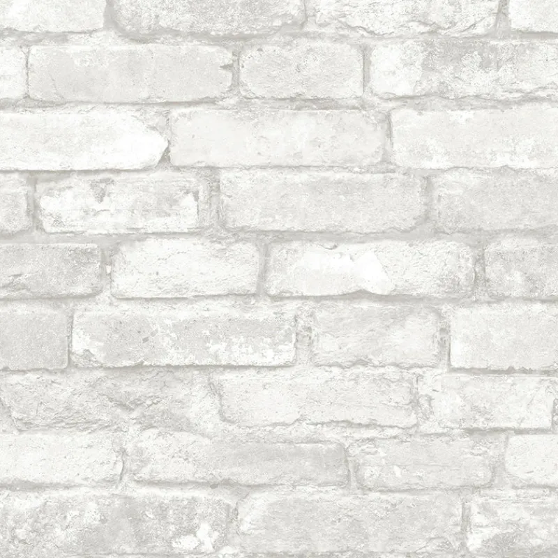 With distressed details and realistic shading, this wallpaper has the look of painted bricks. Its white and grey hues give it a rustic chic style. Completely removable, this peel and stick wallpaper won’t damage walls. Buchanan is a peel and stick, vinyl wallpaper.