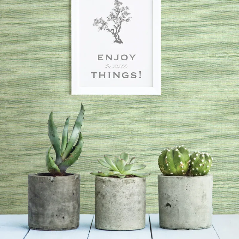 Crisp and fresh, this leafy green wallpaper will have you reminiscing about grassy vineyard hills. With raised ink details, this faux grasscloth pattern adds a bright texture to any room. Agave is a unpasted, non woven wallpaper.
