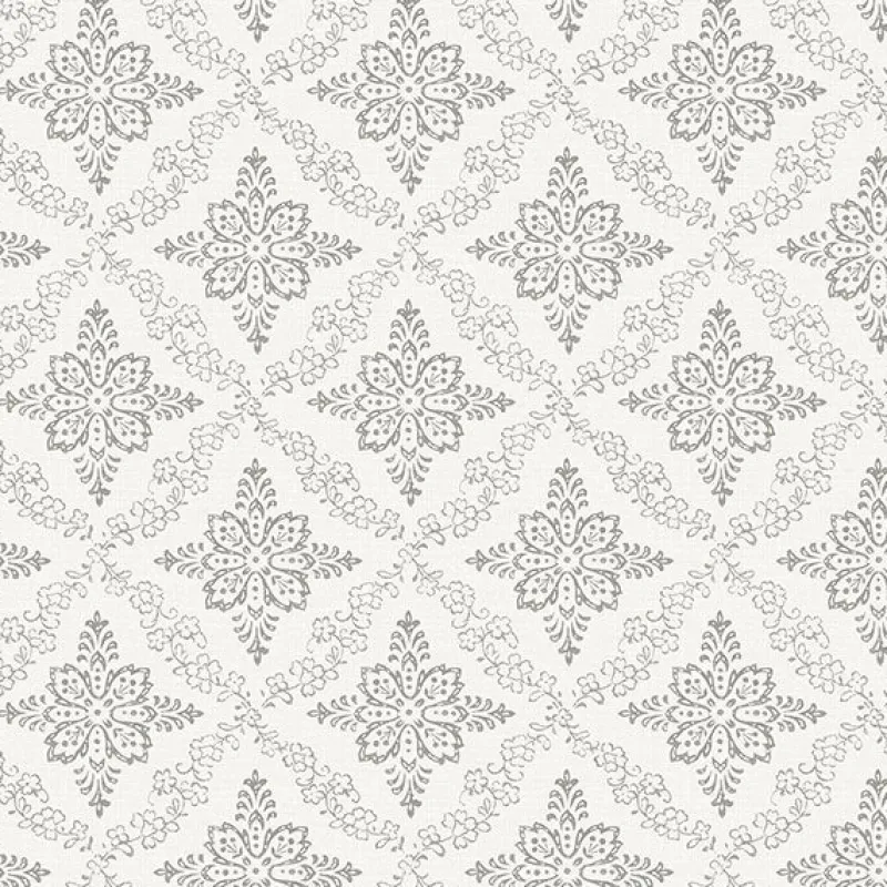 Adorn your walls with this sweet geometric floral design. Its grey hues pop against a white faux linen backdrop, creating a dimensional effect. Wynonna is a prepasted, non woven blend wallpaper.