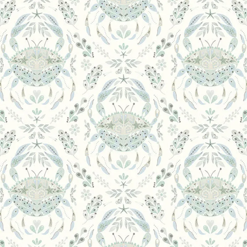 Light blue, teal, and grey combine effortlessly in creating this fanciful damask pattern. Featuring a floral design among crustations, this wallpaper has a coastal style. Annapolis is a prepasted, non woven blend wallpaper.