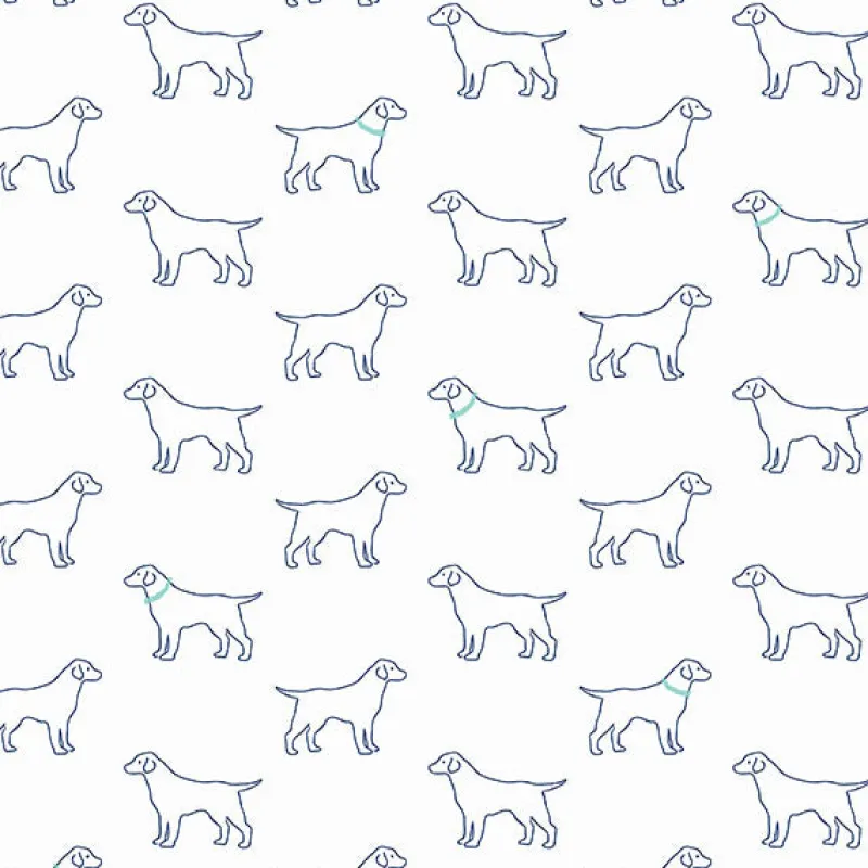 This is the perfect wallpaper for dog-lovers everywhere! The bright white paper is decorated with labradors outlined in blue ink, some wearing the occasional light blue collar.