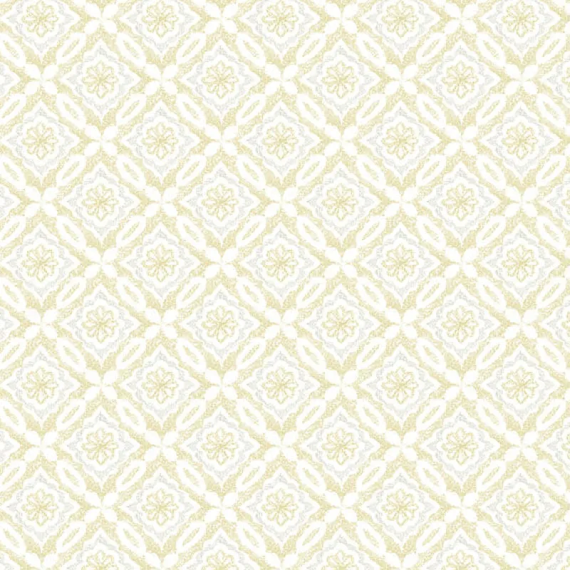 Bring warmth and homey comfort to your walls with this quilted geometric design. Each section features embellished diamonds with a central floral design, the layers alternating between a speckled buttery yellow and light grey and flat white. Hugson is a prepasted, acrylic coated paper wallpaper.