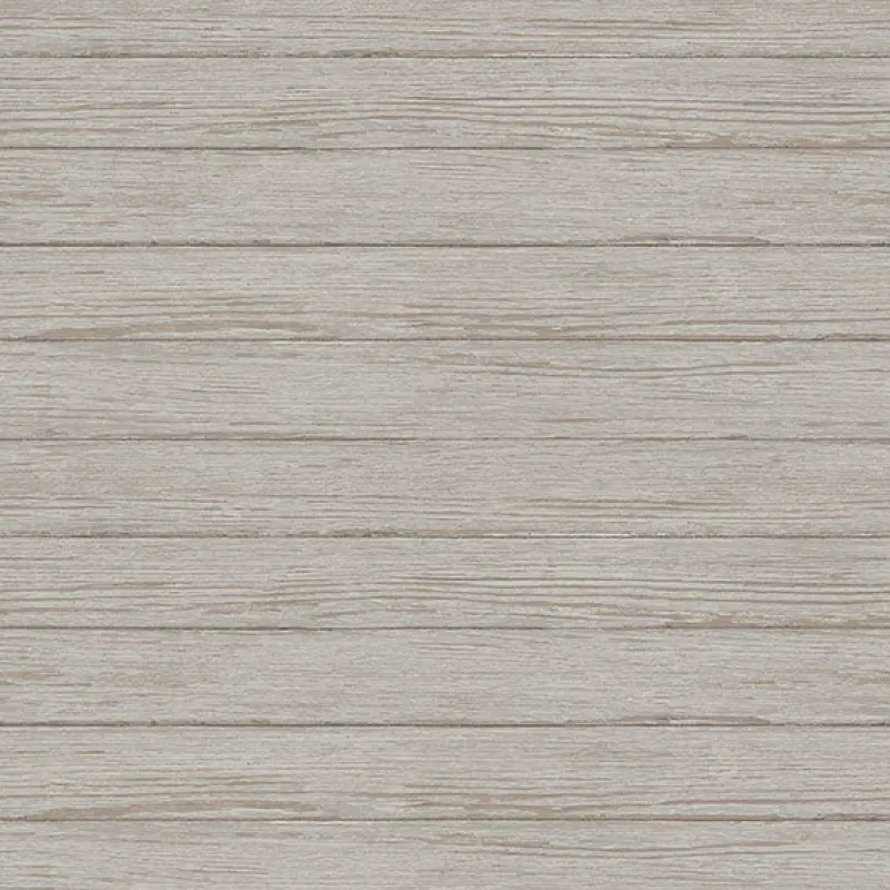 Enjoy classic farmhouse elegance with a modern color update using this shiplap wallpaper. The grey planks are lightly distressed to reveal the pale brown wood, raised inks mimicking the feel of woodgrain. Ozma is a prepasted, acrylic coated paper wallpaper.
