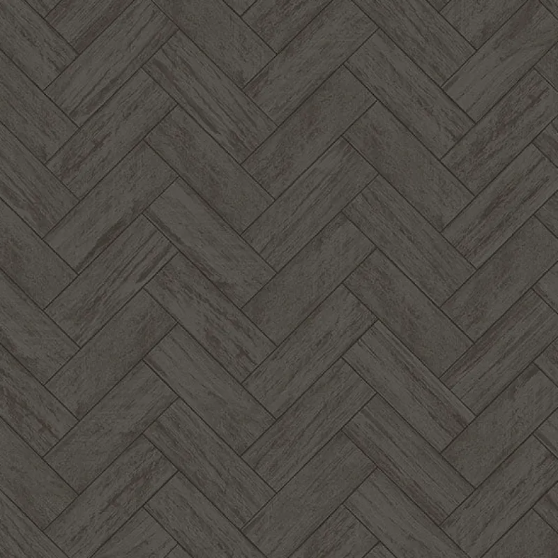 Modern styling is softened with rustic details in this herringbone design. The grey tiles are accented with dark grey woodgrain detailing for an inviting and polished finish. Kaliko is a prepasted, acrylic coated paper wallpaper.