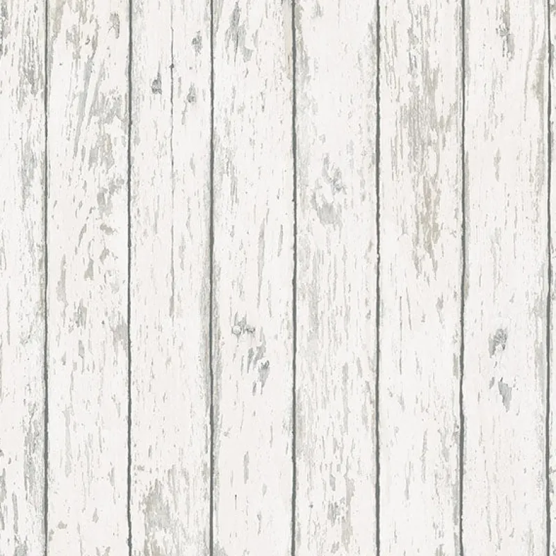 Add rustic comfort to your home with this weathered wood wallpaper. The faux planks look to have stood the test of time, the antique white paint peeling to reveal worn grey wood. Harley is a prepasted, non woven wallpaper.
