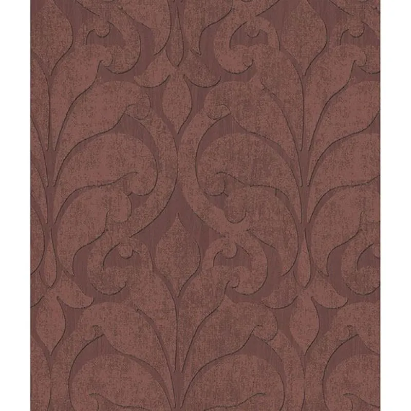 Adorn your walls in elegance with this large scale damask wallpaper. The maroon color is accented by a distressed texture for added dimension.