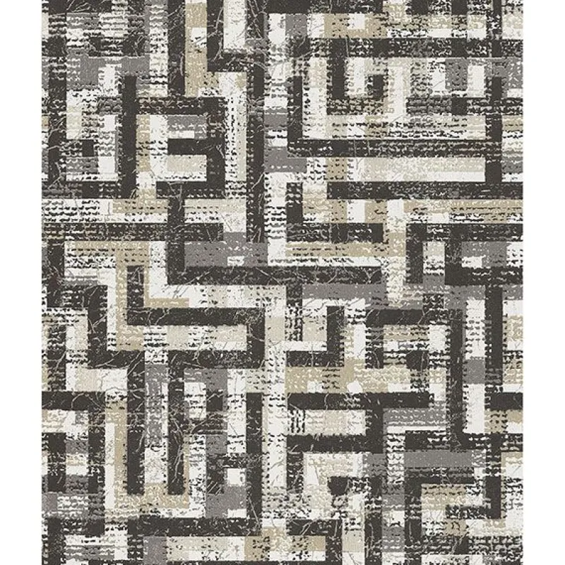 This geometric wallpaper is a unique print with an abstract woven design. Shades of black, grey, white, and taupe create a neutral yet intriguing print. Shimmering metallic accents add a touch of glamour.