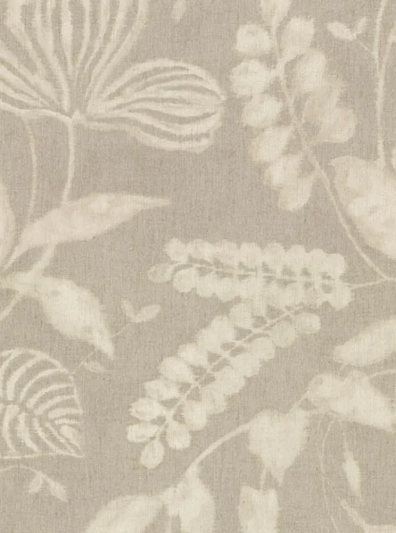 Perfect for creating a boho chic look, this heavily textured wallpaper is made to resemble linen. Beige botanicals are complete with subtle distressing for a dyed fabric design. Arvada is an unpasted, vinyl wallpaper.