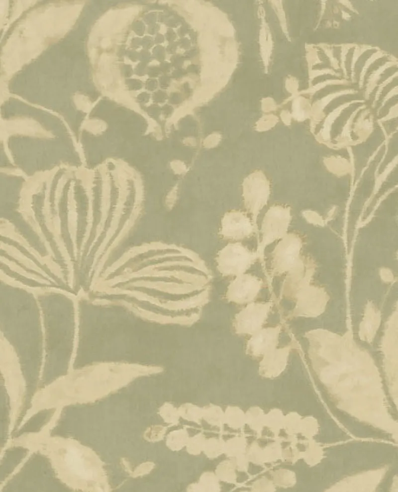 Beige botanicals twirl about a sage background in this nature inspired design. Distressed accents and textured details meld to create a linen inspired print. Arvada is an unpasted, vinyl wallpaper.