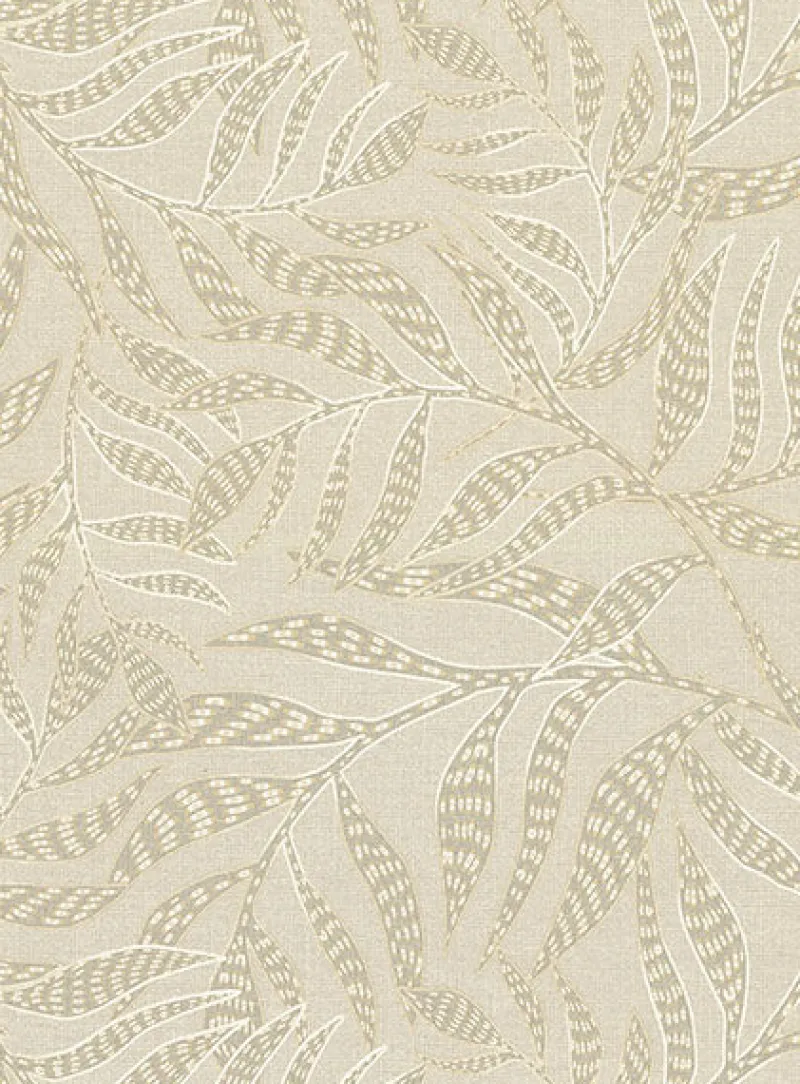 Inspired by the beauty of nature, this wallpaper features leafy vines atop a linen inspired backdrop. Its neutral print is accented by subtle gold highlights. Montrose is an unpasted, non woven wallpaper.