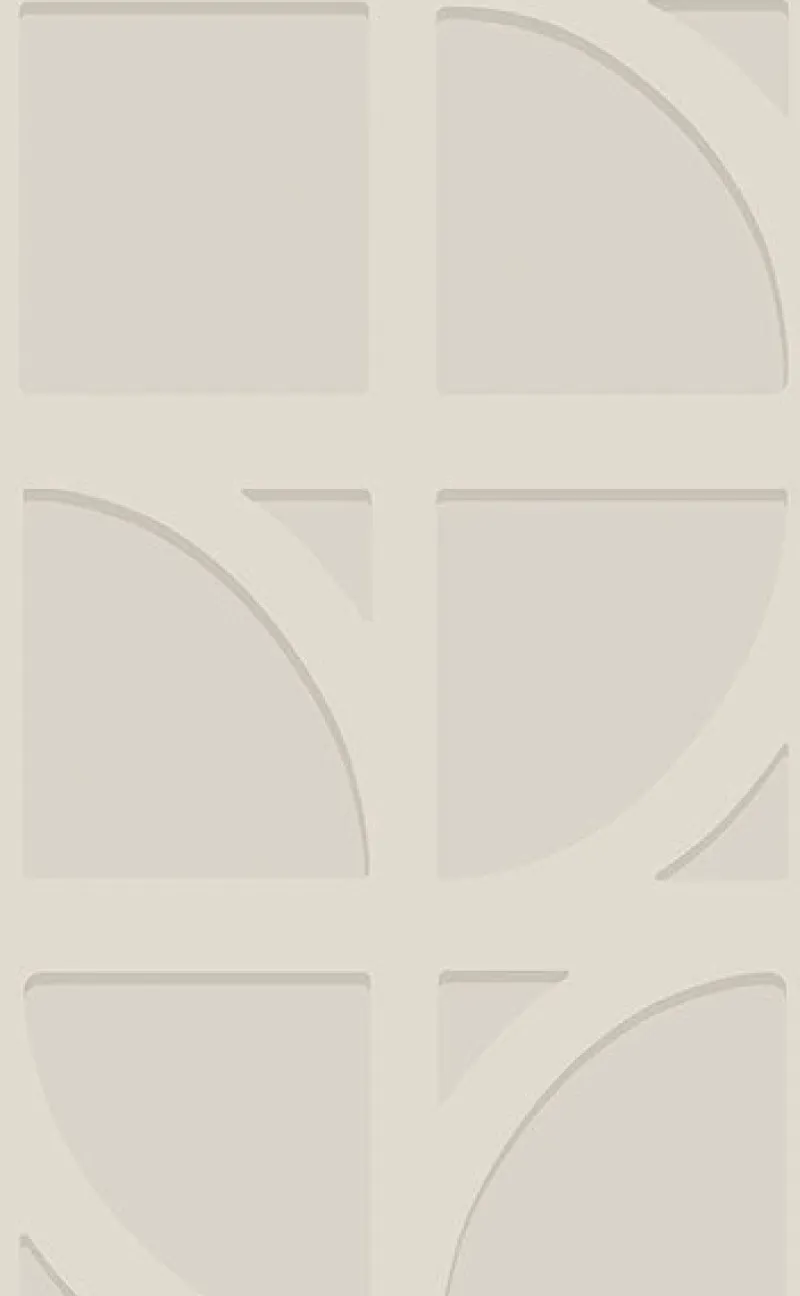 A square trellis with curving accents makes up this compelling, architectural design. The metallic platinum framework is given depth with subtle shadowing along its bottom edges and sits atop a cream backdrop. Shapes is an unpasted, non woven wallpaper.