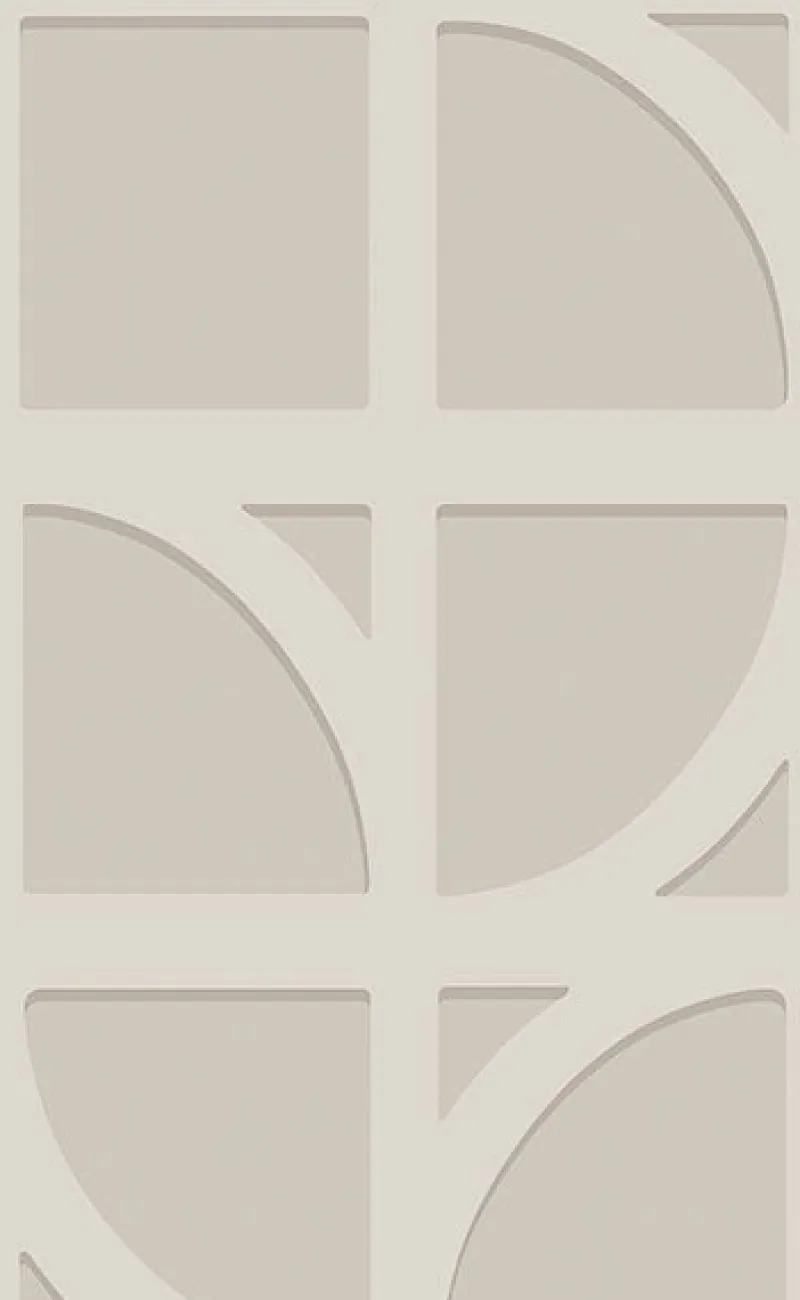 This compelling modern design features a square trellis with curved accents. The light grey framework is given dimension with darker grey shadowing along its bottom edges and sits against a metallic silver backdrop. Shapes is an unpasted, non woven wallpaper.