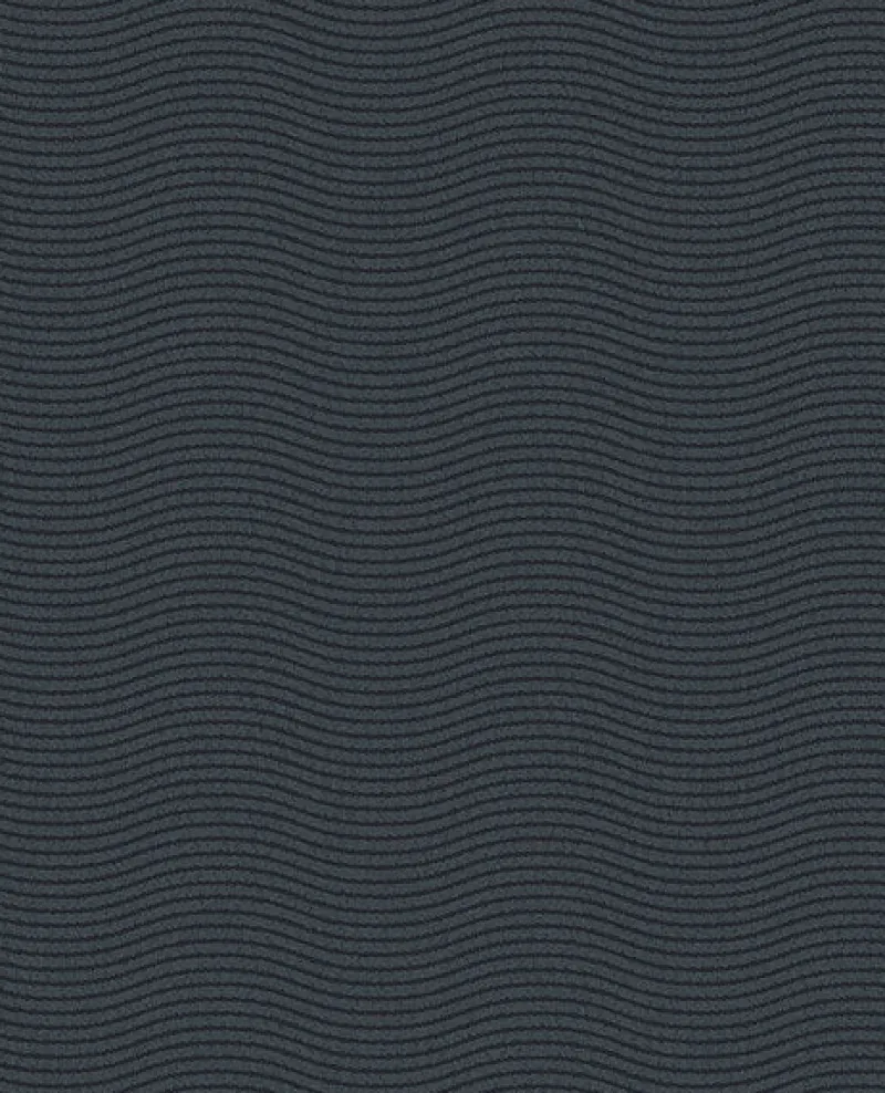 Modern and chic, this wallpaper features softly rippling waves of glittering blue. Set against a deep blue background, the cleft between each ribbon gives this design a tactile element. Curves is an unpasted, non woven wallpaper.