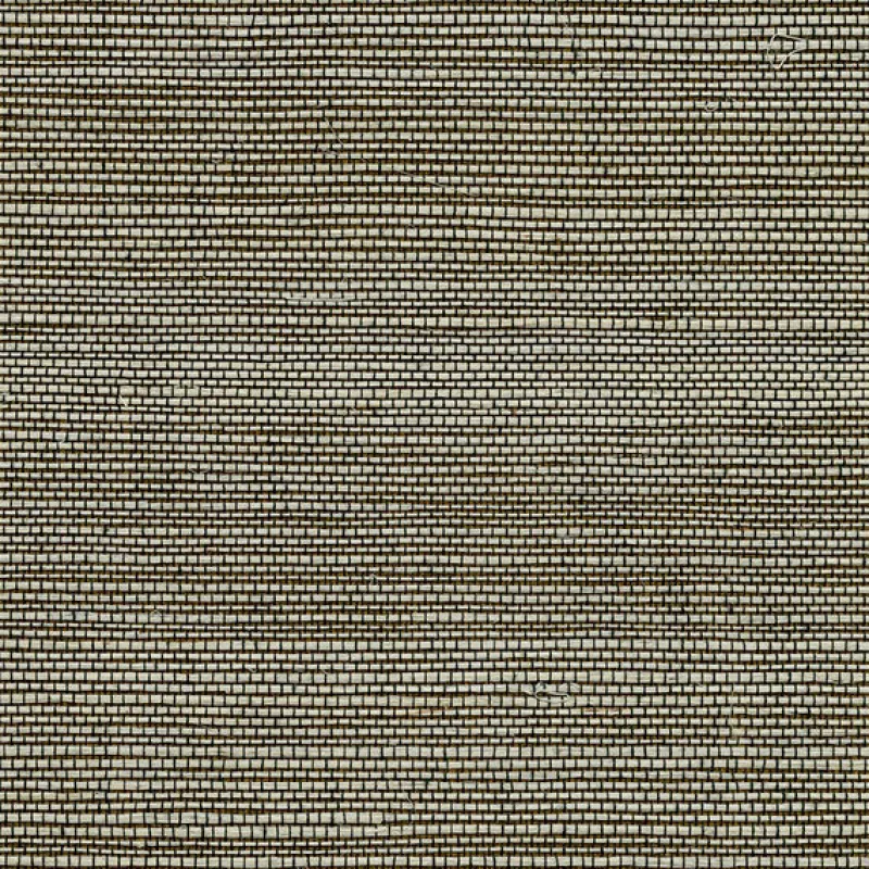 A tailored natural woven spun with exotic grass. Thin vertical fibers in ivory are set against a brown background. Yunnan is an unpasted, grasscloth wallpaper.