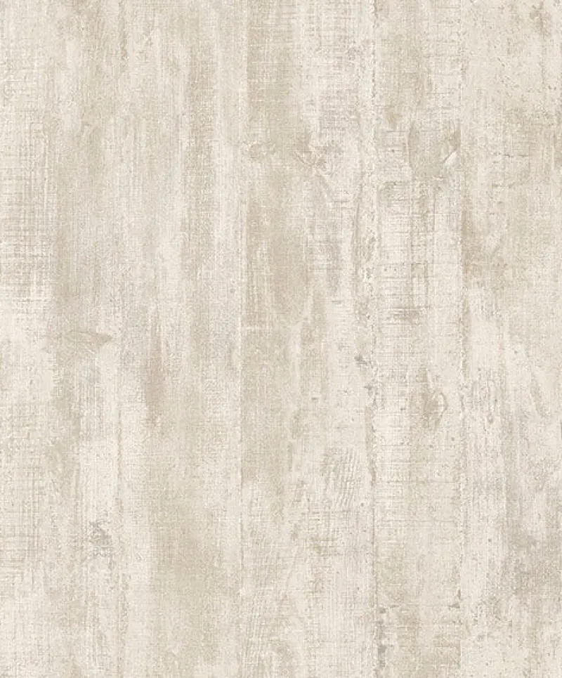 Add brightness and natural texture to your space with this weathered wood plank wallpaper. The creamy white of these vertical planks is accented with beige woodgrain detailing and subtle distressing for chic farmhouse style. Huck is an unpasted, non woven wallpaper.