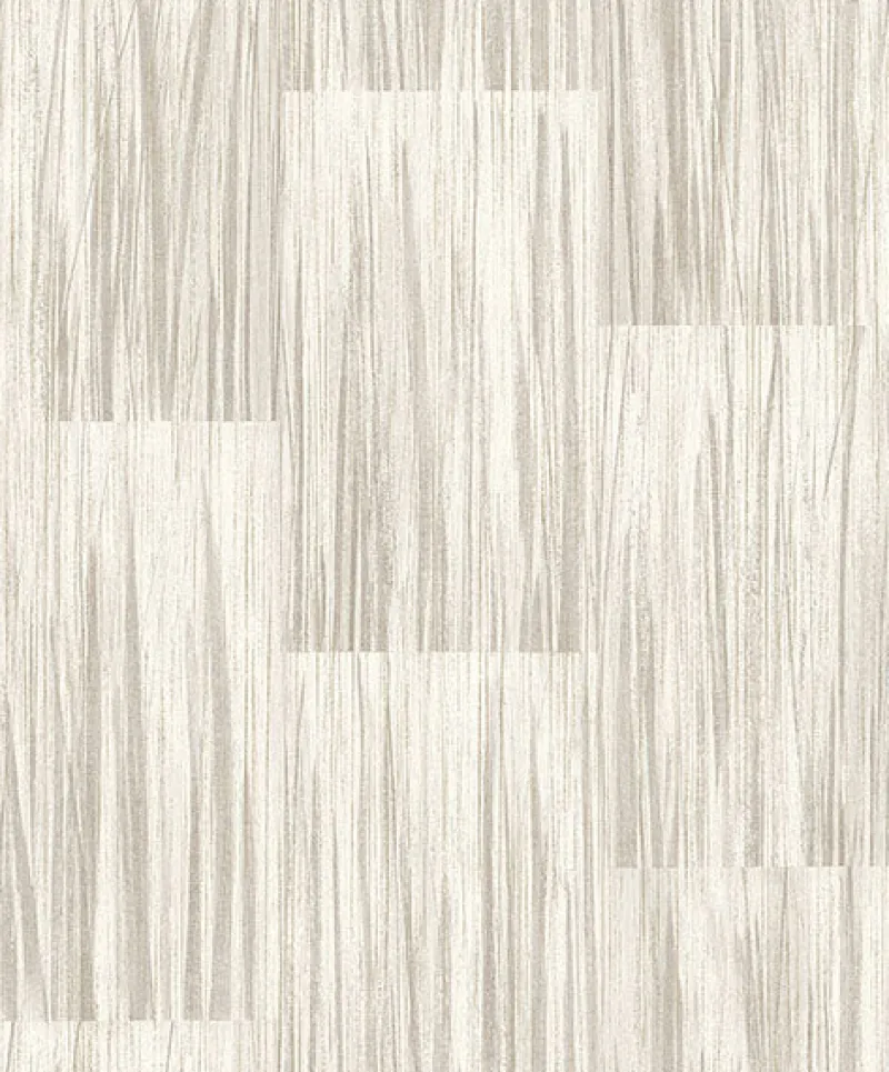 For a modern take on faux wood design, try this textural design! White, taupe, and light grey stripes blend together to depict woodgrain, with ribbons of silver providing additional detail to the illusion. Soren is an unpasted, non woven wallpaper.