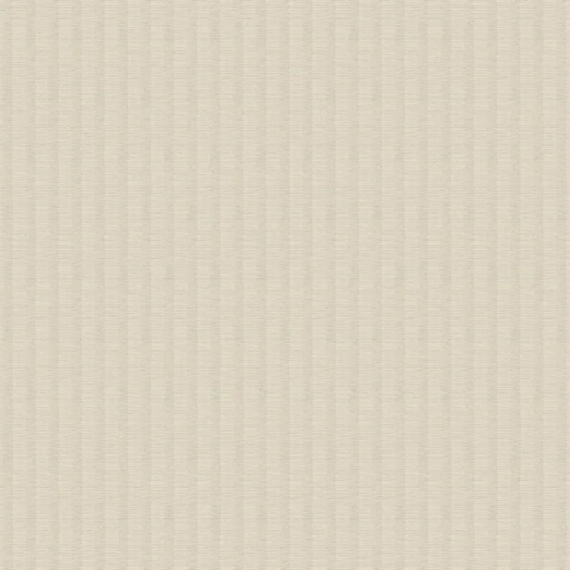 A traditional pattern is given delicate dimensional flair in this wallpaper! Two tones of soft beige form thin vertical stripes, the jagged edges and raised inks throughout giving the design the look of woven natural fibers. Owen is an unpasted, non woven wallpaper.