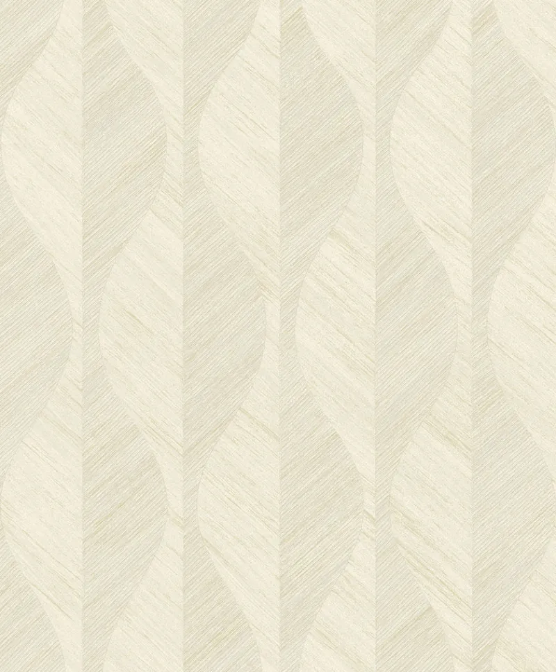 This creamy and dimensional ogee print is exquisite. The cream and taupe hues are lined with raised inks and metallic detailing that accentuates the movement of this retro-inspired design. Oresome is an unpasted, vinyl on paper wallpaper.