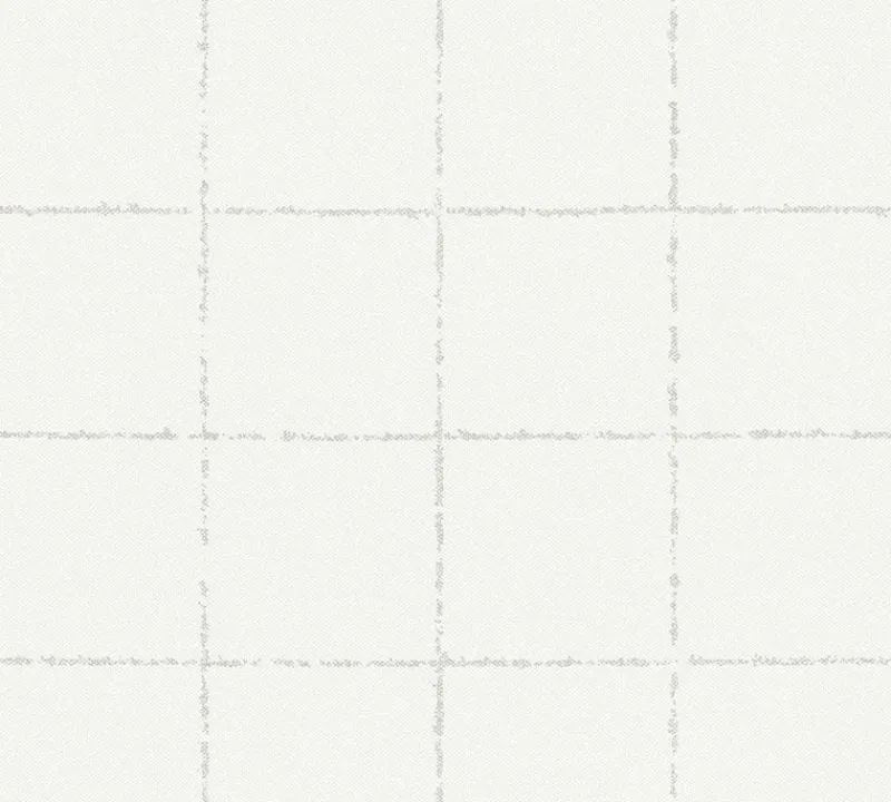 Elevate your home by incorporating this bright white textured print! Distressed grey lines intersect to mimic the look of tiles, all with raised ink detailing and texture. Kishi is an unpasted, vinyl on non woven wallpaper.