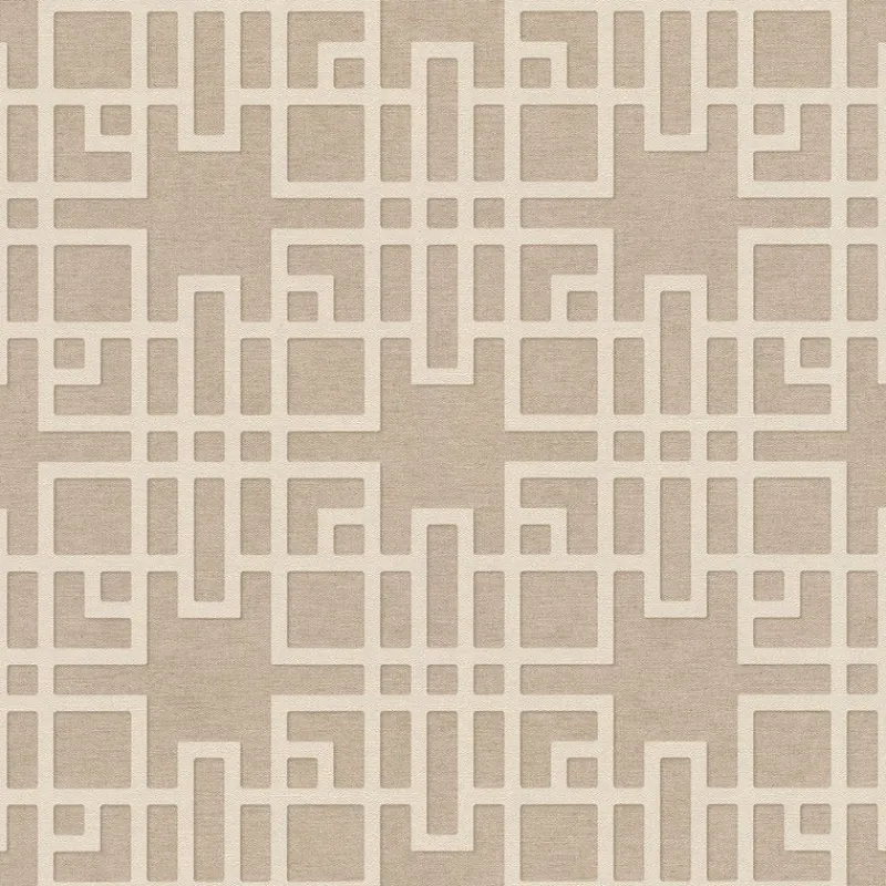 Add dimension and character to your home with this modern trellis print. The maze-like geometrics look especially sophisticated with its sand coloring against a textural beige backdrop. Mana is an unpasted, vinyl on non woven wallpaper.