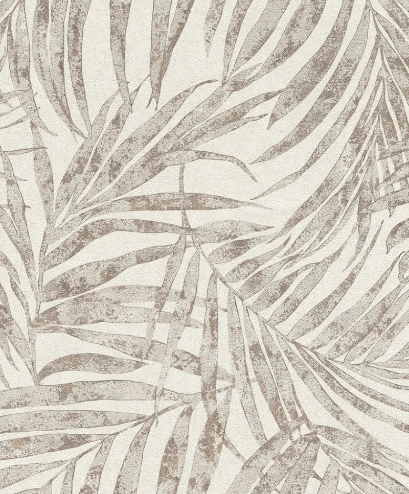 Add a natural touch to your neutral color scheme with this elegant botanical wallpaper. This frond pattern has a sophisticated blend of pewter and grey hues, with raised inks adding rough, distressed texture to the design. Anzu is an unpasted, vinyl on non woven wallpaper.