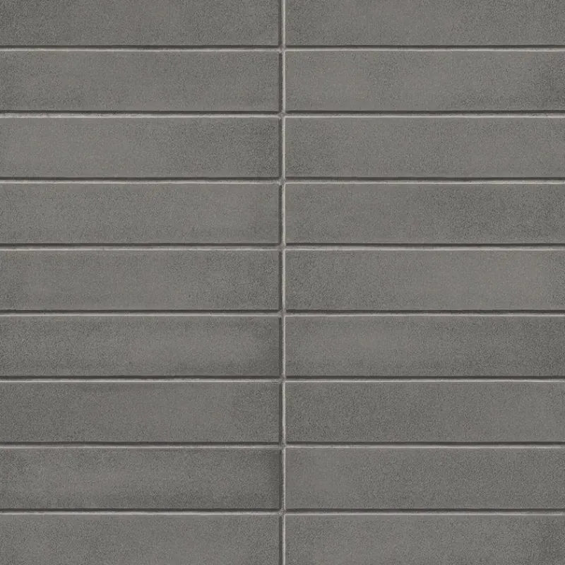 Slimmer and longer than the traditional brick shape, this modern dark grey brick wallpaper has a midcentury modern feel. The dark grey blocks are made to look more realistic with a raised ink texture. A modern and clean addition to your home.