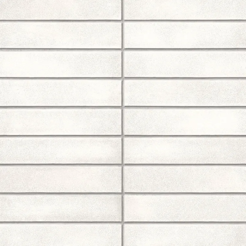 This faux brick wallpaper creates a simple but stately facade. The white blocks have a mottled grey texture printed in raised inks for realistic detail. An easy way to get the midcentury modern look in your home.