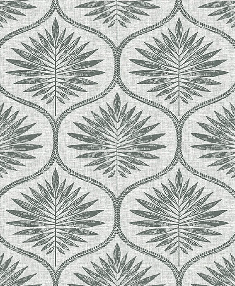 Bohemian with a Scandinavian flair, this nature inspired wallpaper features an ogee print with block leaf motifs. Its grey pattern effortlessly complements an off-white faux linen background. Laurel is an unpasted, non woven wallpaper.