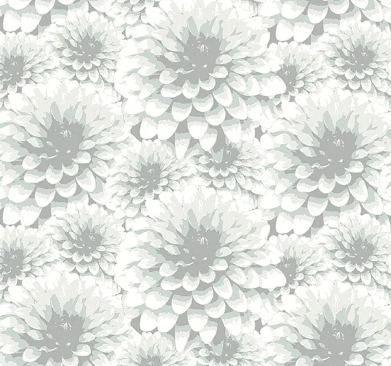 Icy blue highlights add a breath of fresh air to this grey and white painterly floral wallpaper. Its matte finish and large scale design lend to its contemporary style. Umbra is an unpasted, non woven wallpaper.