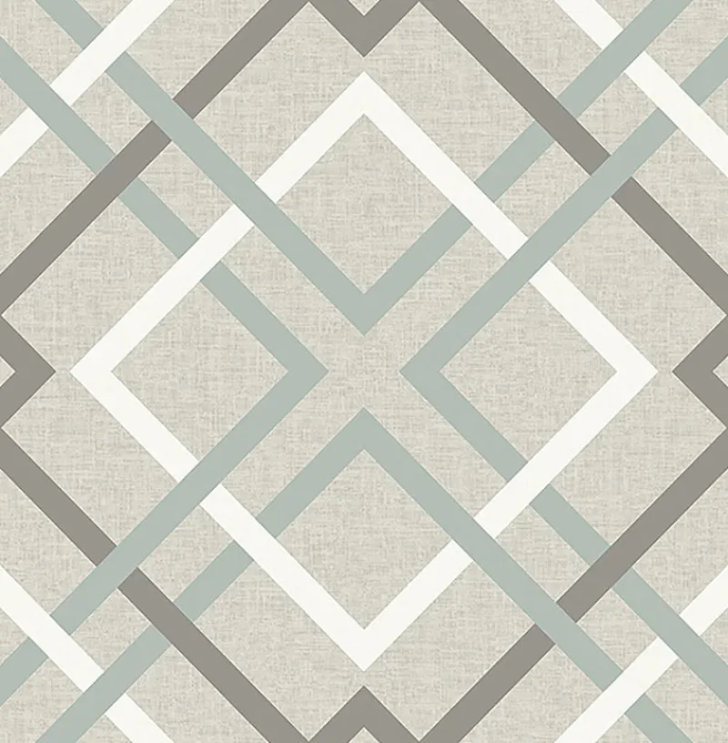 Interwoven blocks come together to form an intricate trellis pattern in this large scale design. Its taupe, white and slate blue geometric pattern effortlessly complements a neutral linen inspired background. Saltire Emile is an unpasted, non woven wallpaper. Shop Perennial by A Street Prints at The Fabric Co. today!