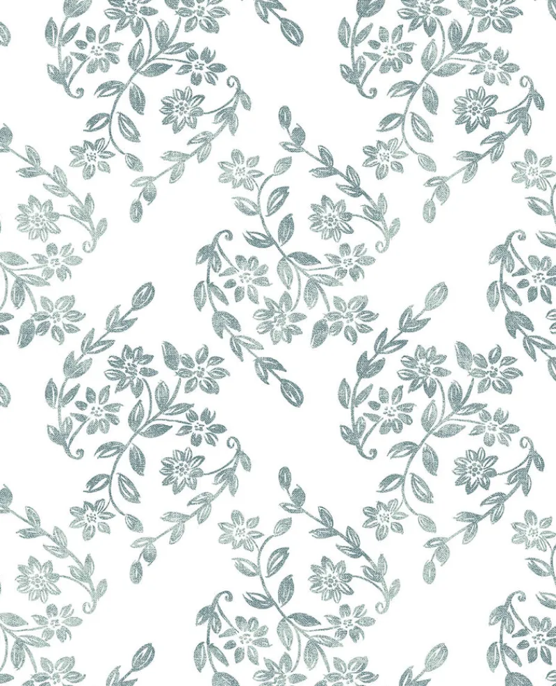 Charming and sweet, this floral trail design has an inviting energy. A palette of deep teal and white hues emphasizes its nature inspired design, while raised inks and distressed accents create a dimensional look. Arabesque is an unpasted, non woven wallpaper. Shop Perennial by A Street Prints at The Fabric Co. today!