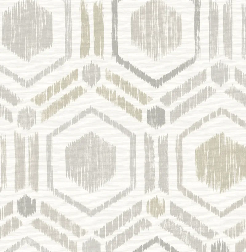 With a woven and textured design, this faux grasscloth wallpaper has a realistic look. Its boho chic geometric print features light grey and beige hues. Borneo is an unpasted, non woven wallpaper. Shop Perennial by A Street Prints at The Fabric Co. today!
