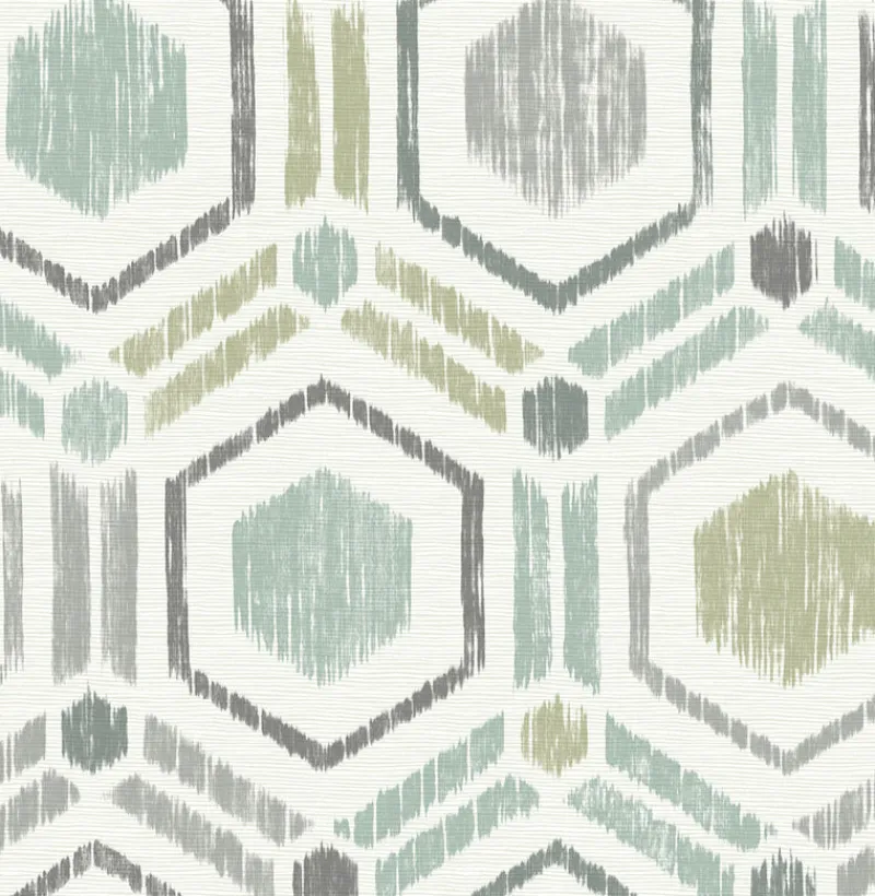 With a palette of green, grey and sage hues, this geometric wallpaper has an organic chic style. Its woven design and textured accents lend to an authentic grasscloth look. Borneo is an unpasted, non woven wallpaper. Shop Perennial by A Street Prints at The Fabric Co. today!
