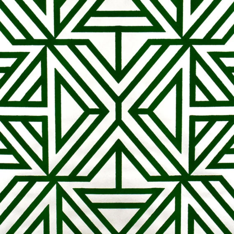 Dazzling and luxurious, this modern wallpaper has a fresh energy. The green geometric pattern is flocked over a silver background. Helios is an unpasted, non woven wallpaper. See pattern 2902-87332 on page 1 and order a sample today!