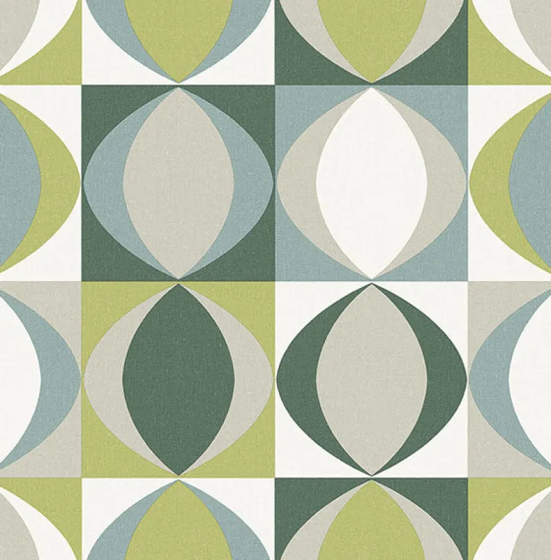 Add a splash of color and dimension to walls with this linen inspired design. A retro geometric pattern pops with teal, lime and dark green hues, while raised inks add a textural effect. Archer is an unpasted, non woven wallpaper.