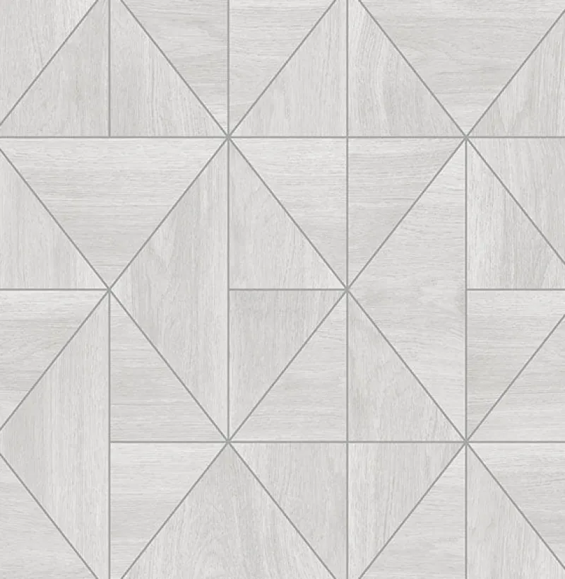 Farmhouse with a modern twist, this wood inspired wallpaper features a silvery geometric print. Raised inks and grain details emphasize its realistic look, while a light grey palette is perfect for brightening up rooms. Cheverny is an unpasted, non woven wallpaper. Shop 2908-25320 from The Fabric Co. for your walls today!