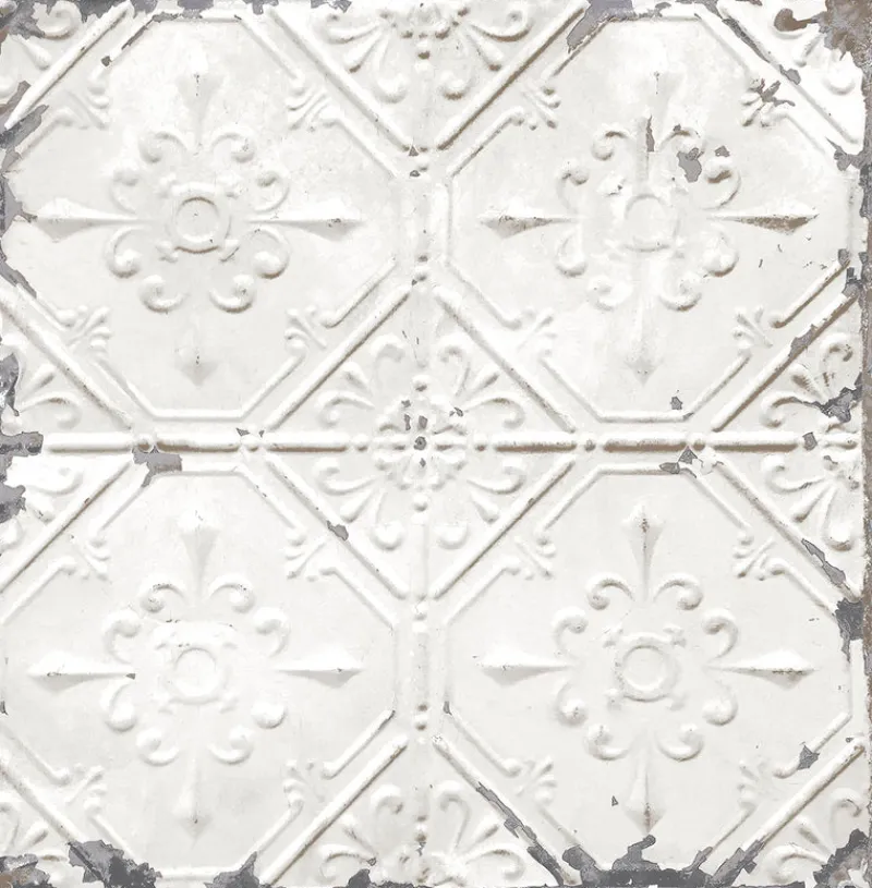 With distressed details and realistic shading, this vintage wallpaper resembles tin ceiling tiles. Silver highlights make its off-white design pop. Donahue is an unpasted, non woven wallpaper. Pattern 2922-22305 from A Street Print’s Trilogy wallpaper book by Brewster would make a beautiful addition to any room in your home!