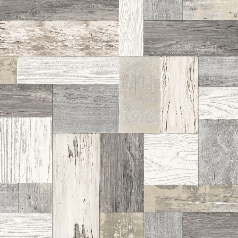 A greyscale design has a distressed look with an array of weathered wood planks. Its neutral color palette adds a contemporary touch to its reclaimed style. Keaton is an unpasted, non woven wallpaper. Pattern 2922-25383 from A Street Print’s Trilogy wallpaper book by Brewster would make a beautiful addition to any room in your home!