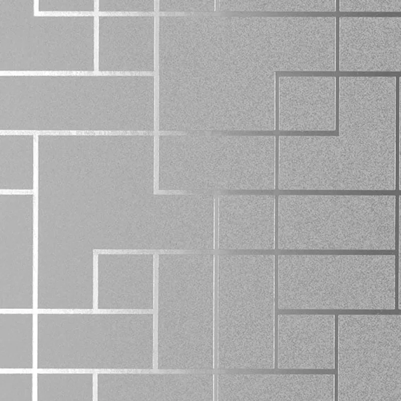 Adorn your walls with this refreshing metallic geometric design. Its silver accents pop against a grey textured backdrop, perfect for adding depth to any space. Mason is an unpasted, solid sheet vinyl wallpaper.
