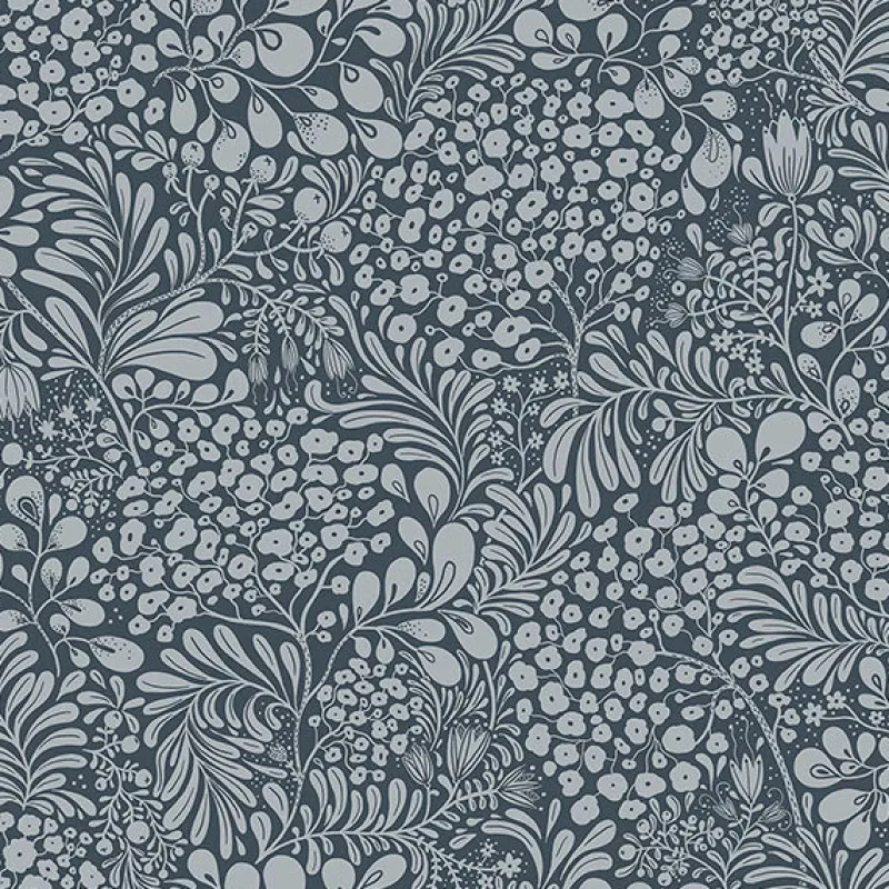 This Scandinavian-inspired botanical wallpaper will bring earthen elegance to your home! Inked in white, the delicate florals and lush leafy plants twine together against a rich blue backdrop. Siv is an unpasted, non woven wallpaper.