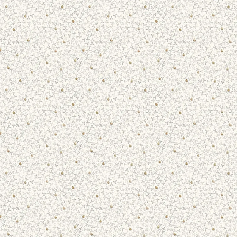 Breathe a fresh energy into rooms with this whimsical wallpaper. Grey miniature clovers frolic about a white background, while gold accents add a touch of glamour to its nature inspired design. Lark is an unpasted, non woven wallpaper.