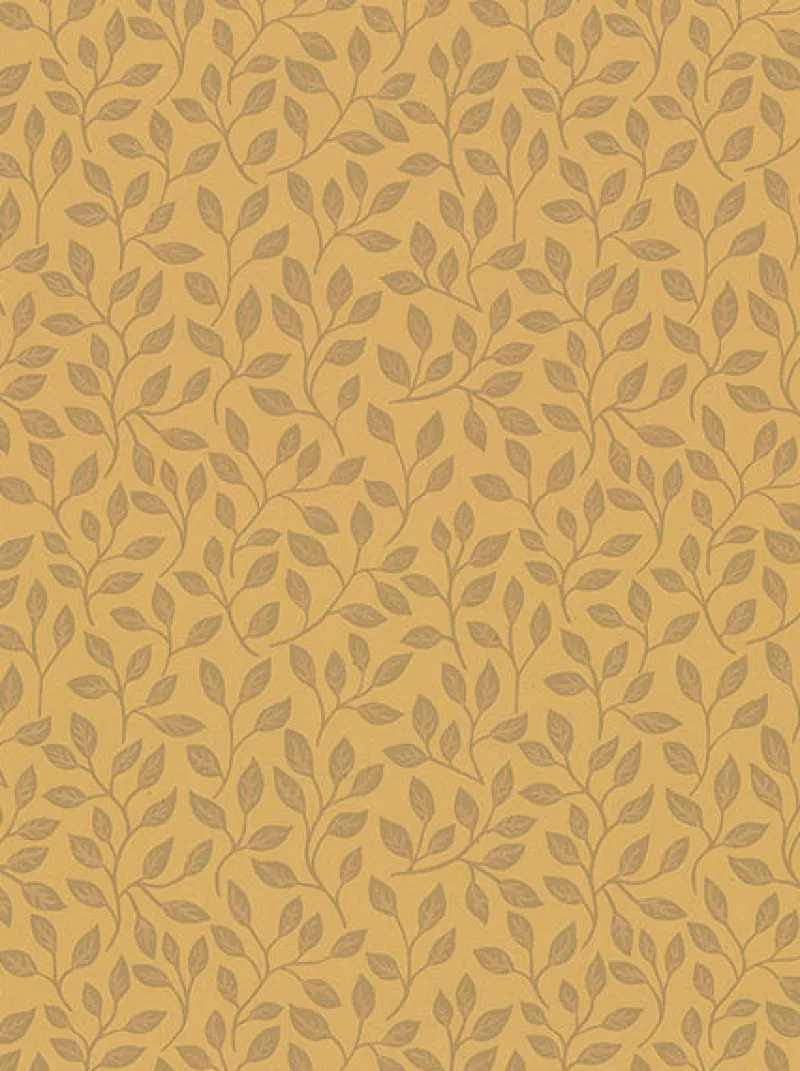 Glimmering with gold accents, light brown vines stun against a rich mustard background. Its painterly design and whimsical energy is perfect for creating a Scandinavian look. Posey is an unpasted, non woven wallpaper.