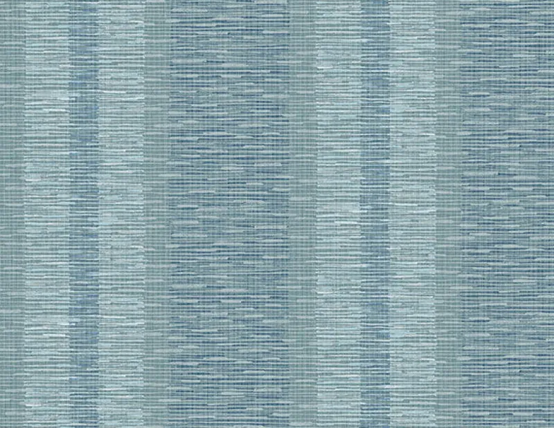 A palette of teal, indigo and light blue effortlessly meld in this contemporary stripe design. String accents and its layers of hues emphasize its dimensional effect. Pezula is an unpasted, string wallpaper.