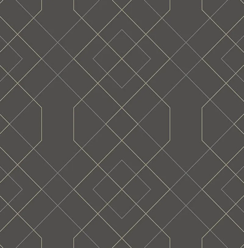 Gold- and pale blue-colored lines form a stunning geometric design on a matte grey backdrop, creating the perfect wallpaper for modernizing any space. Ballard is an unpasted, non-woven wallpaper.