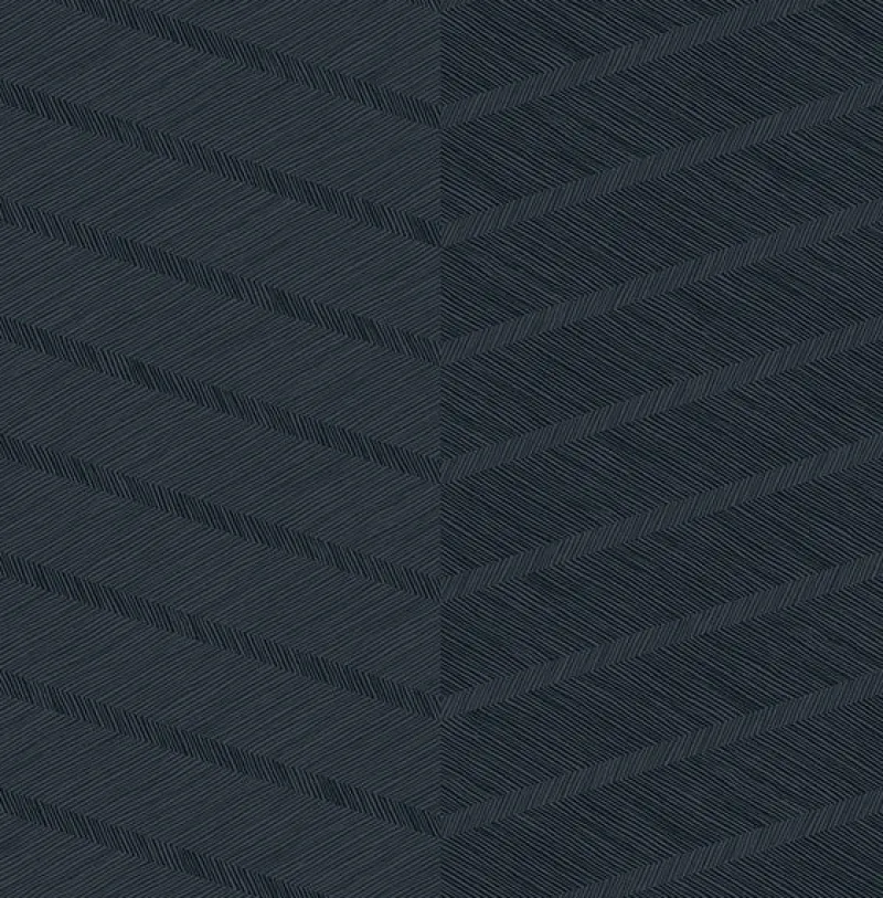 A modern chevron wallpaper with a metallic twist, this intricate design is perfect for adding depth to any space. With a classic blue hue, this pattern has a chic look. Aspen is an unpasted, non-woven wallpaper.