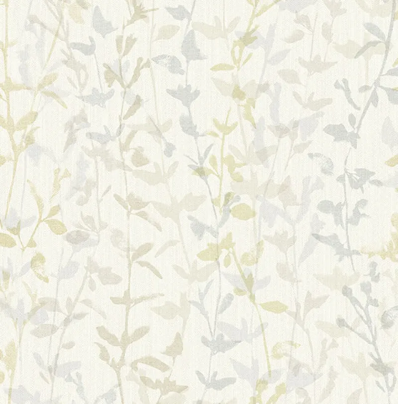On a faux linen backdrop, delicate and charming trails features a refreshing color palette. The grey, taupe, and muted yellow trails combine effortlessly to create this versatile design. Thea is an unpasted, non-woven wallpaper.