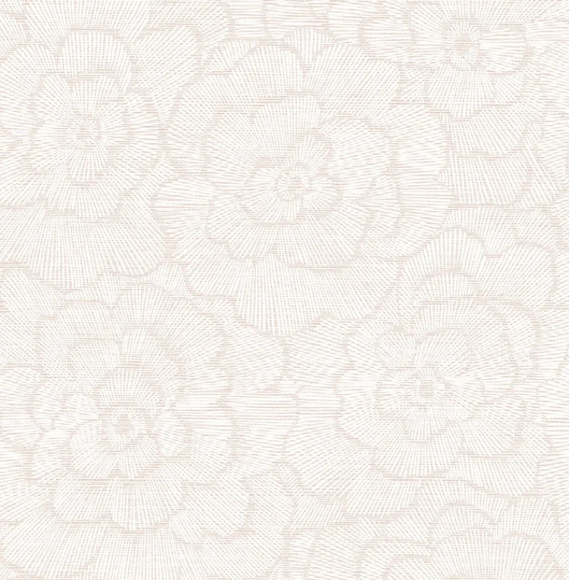 White flowers seem to bloom before your eyes in this sweet floral wallpaper. A pink, grasscloth patterned backdrop adds warmth to stylized blossoms composed of strokes of white raised inks. Periwinkle is an unpasted, non woven wallpaper.