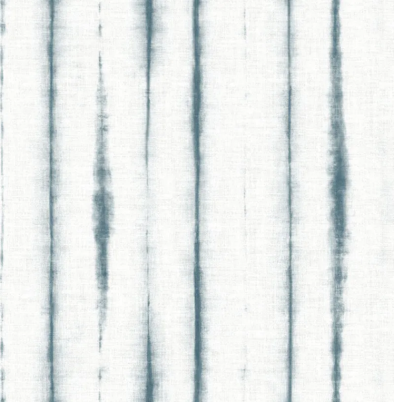 Beautifully crafted, this elegant shibori design provides elevated bohemian flair. A white faux linen background is accented with ribbons of teal ink that flow and expand organically into their surroundings. Orleans is an unpasted, non woven wallpaper.